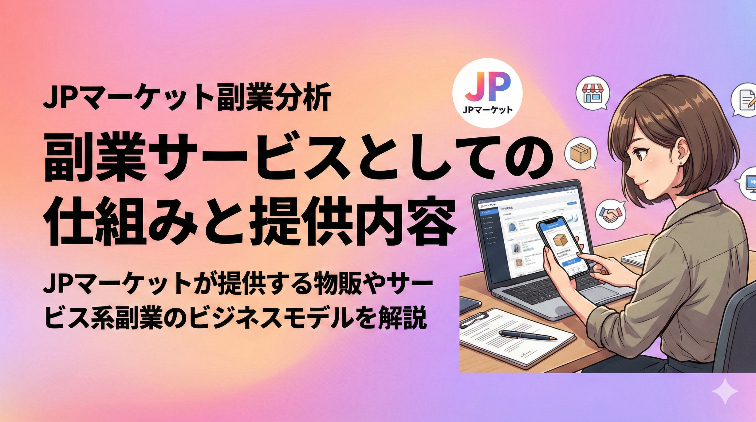 本記事では、JPマーケットが提案するビジネスモデルの全貌や、利用するメリット、そして安全に始めるために知っておくべき運営元の情報について、リサーチ結果をもとに分かりやすく解説します。